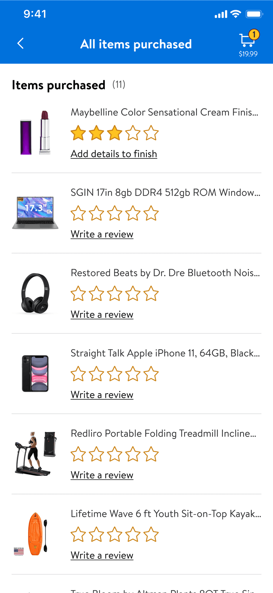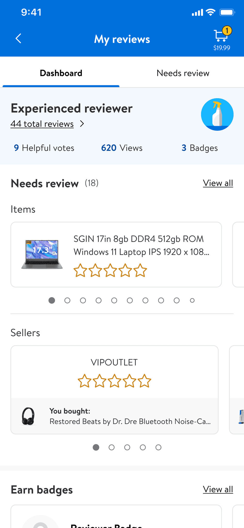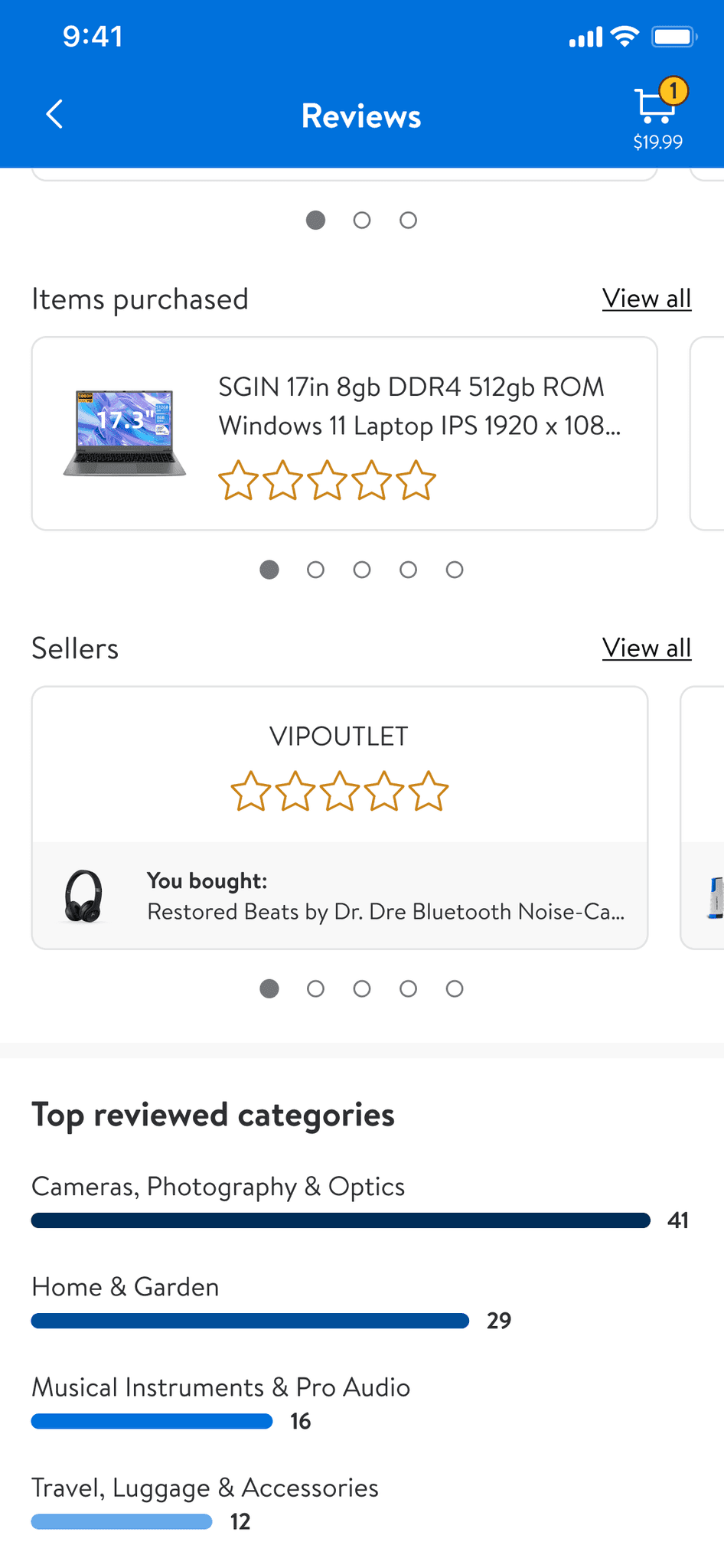 Users can view all reviewable items and sellers in one place.