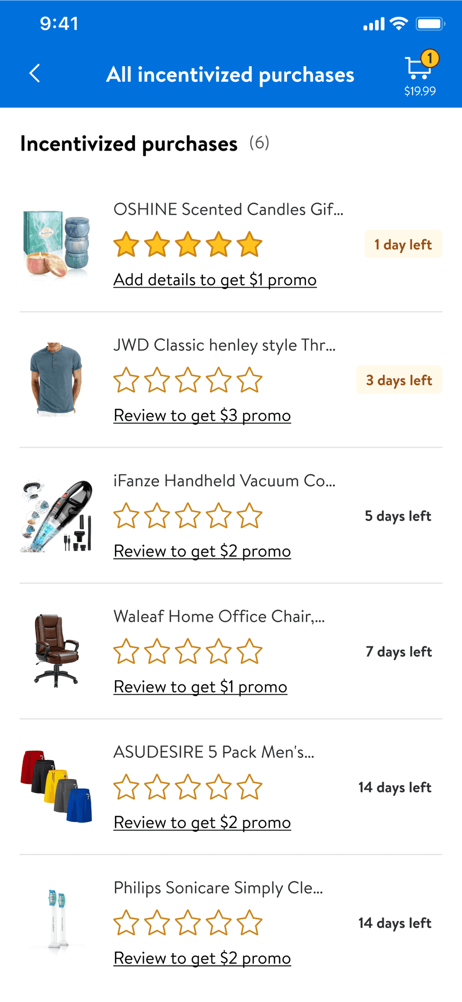 Reduces friction by placing review options front and center, guiding users seamlessly into the review flow.