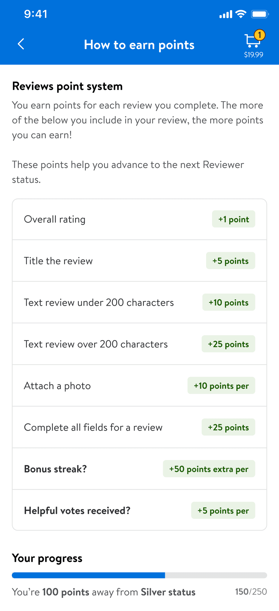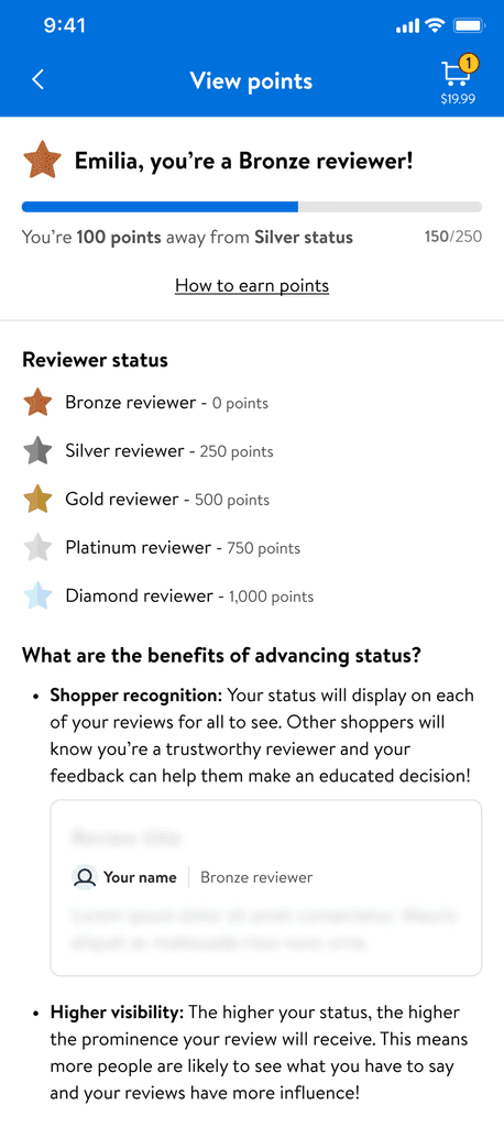 Users can leave reviews naturally, earning points through a simple tracking system.